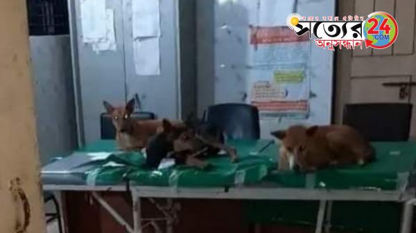 সংশ্লিষ্ট সূত্র জানায়, শনিবার (১৯ জুন) একটি ফেসবুক আইডি থেকে ছবিটি পোস্ট করা হয়। ছবিতে দেখা যায় স্বাস্থ্য কমপ্লেক্সের জরুরী বিভাগের রোগীর আসনে তিনটি কুকুর বসে আছে। এ আসনটিতে কখনো কখনো চিকিৎসক বসেও কাজ করে থাকেন। ছবিটি সামাজিক যোগাযোগ মাধ্যমে ছড়িয়ে পড়ার পর হাসপাতালের কর্মকর্তাদের দায়িত্বহীনতা নিয়েও প্রশ্ন তুলেছেন অনেকে।
