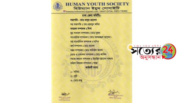 আজ ১-১-২২ এ হিউম্যান ইয়ুথ সোসাইটির কেন্দ্রীয় সভাপতি ইঞ্জিঃ মুজাহিদুল ইসলাম জাবের ও সম্পাদক রবিউল হোসেন চৌধুরী অনুমতিক্রমে ঢাকা জেলা কমিটি অনুমোদন দেওয়া হয় কমিটি তে যারা আছেন।