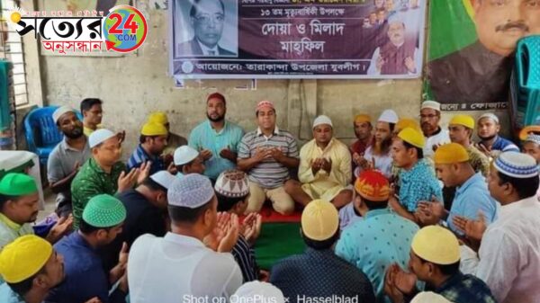 অনুষ্ঠান শেষে মরহুমের আত্মার শান্তি কামনা করে দোয়া ও মিলাদ মাহফিলের আয়োজন করা হয়।মোনাজাত পরিচালনা করেন,তারাকান্দা থানা জামে মসজিদের খতিব ও ইমাম আলহাজ্ব মাওলানা মোঃজহিরুল হক।