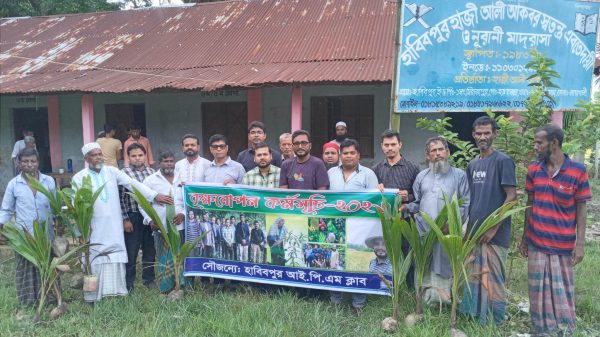 সোমবার বিকাল ৫ টার সময় উপজেলার সিরাজপুর ইউনিয়নের হাবিবপুর হাজী আলী আকবর স্বতন্ত্র এবতেদায়ী ও নূরানী মাদ্রাসা প্রাঙ্গণে আইপিএম ক্লাবের সভাপতি নুরুল আফছার পলাশের সভাপতিত্বে ও সাধারণ সম্পাদক হারুন অর রশিদের সঞ্চালনায় অনুষ্ঠিত বৃক্ষরোপণ ও চারা