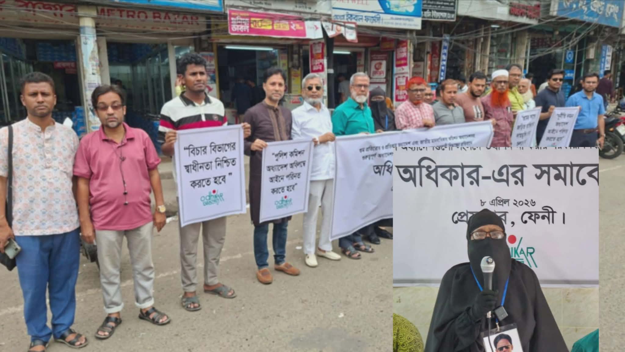গুম প্রতিরোধ অধ্যাদেশ, জাতীয় মানবাধিকার কমিশন অধ্যাদেশসহ গুরুত্বপূর্ণ অধ্যাদেশ বাতিলের প্রক্রিয়া বন্ধ করে অবিলম্বে আইনে পরিণত করতে ফেনীতে অধিকার’র সমাবেশ ও মানববন্ধন