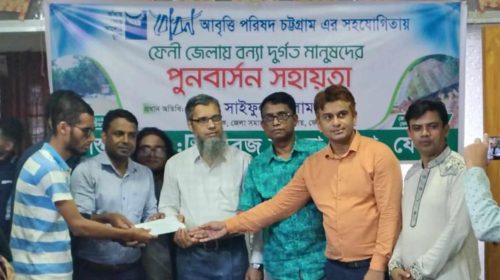 ফেনীতে বন্যা দুর্গত মানুষদের পুনবার্সনে বোধনের আর্থিক সহায়তা প্রদান