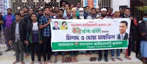 ফেনীর দাগনভূঁঞায় ছাত্রদলের প্রতিষ্ঠাবার্ষিকীতে মিলাদ ও দোয়া মাহফিল।