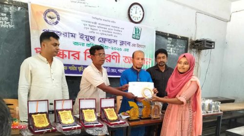 ইয়ুথ ফ্রেন্ডস ক্লাবের উদ্যোগে রচনা প্রতিযোগিতার বিজয়ীদের মাঝে পুরস্কার বিতরন ও সার্টিফিকেট প্রদান